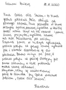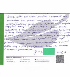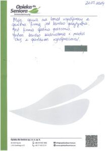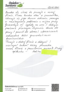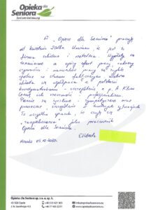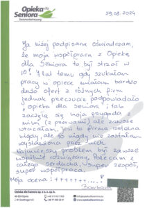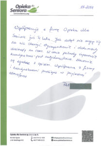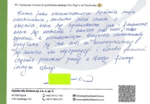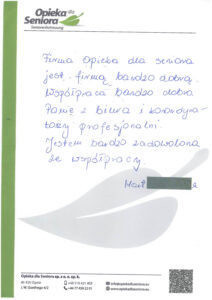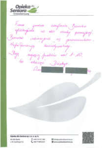 W zakładce Opinie o naszej firmie znajdziesz wypowiedzi osób, które zdecydowały się na współpracę z Opieką dla Seniora. Nasze opiekunki chwalą sobie profesjonalne podejście, wsparcie na każdym etapie pracy oraz rzetelność, z jaką podchodzimy do każdego zlecenia.